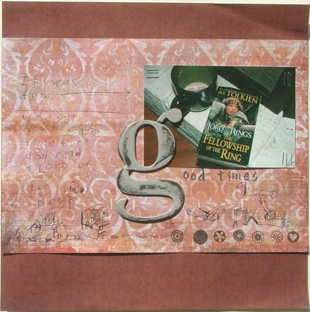 Since we've moved to our new house, we've spent quite a few winter evenings with a fire, hot cocoa and Lord of the Rings. The boys always love making a fire so I thought I'd let Noah "help" create this layout. I actually did the layout and let him do the journaling. He did write some but his favorite "mode" of communication is comic doodling so he did that as well. It will definitely help me to remember him at this age 'cause he does that all the time right now. I like the everyday real life scrapbooking part of this layout. It is very "real" life. It would have been more real life if I included a pic of the rest of the Den were our fireplace is...the part with the messy toys. : )