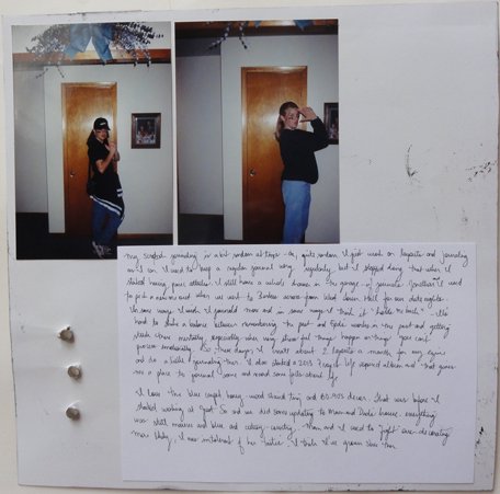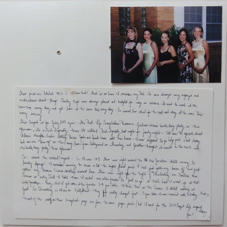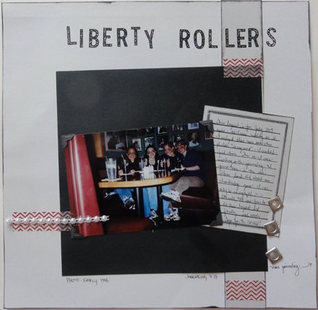 Ahhh...more photos from the teenage days. There were 4 of us that hung out a lot. We had fun a couple of times rolling some friend's houses. One night, afterwards we went to Applebees and got Cokes. I had 3 photos I wanted to include but as I tried to lay them out, I just couldn't find a way to make it look good. So, I just attached 2 of them to the back of the layout. I wanted to keep them together and I wanted to remember the things in the photos (the decor of my Mom's house then) but they just didn't make a nice looking layout. So, now I have the best of both worlds...a nice looking layout on the front and all the photos on the back.