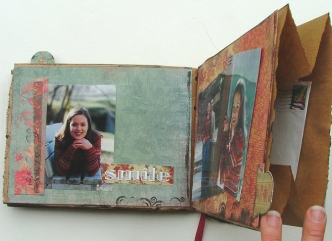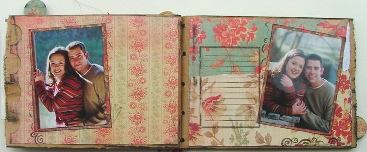 Here I just wanted to show you the fun pockets that the paper bag albums make. I used the pockets in this album for letters and such from our courting days. : )