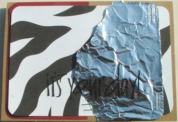 I love using aluminum foil...not archival quality but fun! I used the red card stock, the zebra print and then attached the aluminum foil with staples.