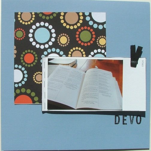 So this is just a plain blue piece of card stock for the background. I then added the cool circle pattern – American Crafts – Play Ring Around the Rosie. Then...my favorite part! I made a mini album to put on my 12 x 12 page. I love doing this when I have just too many photos for 1 design. It makes it so much easier than having to create multiple pages for one topic or event. For this mini book I just used white card stock and stapled it together. I used my fastenator staples to attach the black ribbon and then I used rub-ones from Making Memories – Hudson/black. I love rub-ons!!! So, that really turned into a simple scrapbook layout too! Yay!